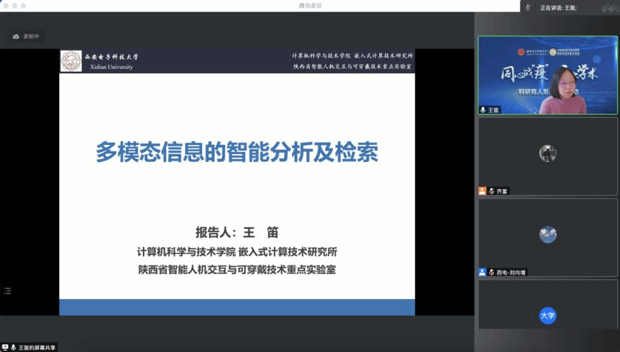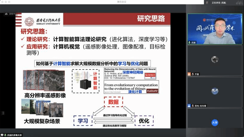 (通讯员 齐富、贠琳红、何风)为进一步做好科研育人工作,活跃疫情期间科研学术氛围,帮助员工提升科研能力和学术水平,yl7703永利集团近期组织开展“同心战‘疫’,云上学术”科研育人系列学术活动。2022年1月9日下午学院在线举行了第四场青年教师学术报告会,邀请学院王笛、武越、赵博程和张晓东四位优秀青年教师作学术报告。学院近百名研究生线上参会,会议由大数据与视觉智能研究所副所长刘向增副教授主持。