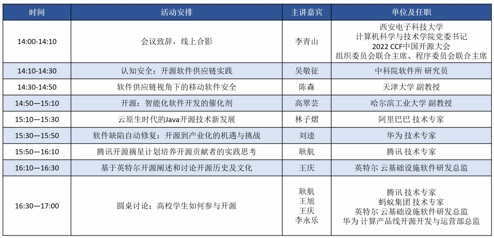 开放、协作、共享的开源模式已成为全球软件技术和产业创新的主导,也为信息技术国产自主化提供了强大助力。高校是国产开源重点建设的主阵地,老员工是国产开源未来发展的中坚力量。CCF开源高校行是CCF开源发展委员会的品牌活动,旨在高校加强开源文化宣传和开源人才培养,是CCF开源发展委员会年度重点校园推广活动之一。今年截止8月份,CCF开源高校行活动已在北京大学、复旦大学、南方科技大学、北京航空航天大学等知名高校成功开展,吸引了一大批高校师生关注开源、拥抱开源、投入开源。“CCF开源高校行西电站:开源大咖和你一起悟开源”活动将于2022年8月19日14:00-17:00以线上方式召开。