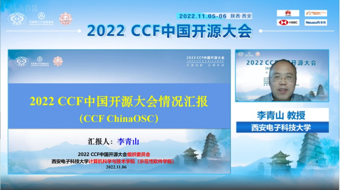 大会程序委员会与组织委员会联合主席、yl7703永利集团软件工程学科负责人、陕西省智能软件工程创新团队负责人、西安市智能软件工程重点实验室主任李青山代表大会组委会向与会代表汇报了大会情况。李青山主要从大会基本情况与大会筹办工作两个方面对大会进行了总结,归纳了会议体系与会议内容,指出本届大会的论坛数量、注册人数与合作媒体数量等均超过预期。其中论坛数量达到24个,注册人数达到180人,合作媒体数量超过10家。11月5日各平台累计观看人数超过18万人,11月6日累计观看人数超过16万人,两天会期累计观看人数超过34万人,单个论坛平均访问量超过1万人次,最大访问量超过2.1万人,有利的扩大了大会影响,有效的传播了开源理念。进一步,李青山梳理了大会筹办的脉络,表示开源发展委员会与承办团队一同组成了大会组委会,持续密切协同,先后确定了支持单位与四家赞助商,构建了完善的会议联办体系。组委会持续通过多家单位的多种渠道对大会进行宣传,会议通知等的阅读量累计超过3万人次。面对疫情等因素的影响,组委会全程关注、及时调整、稳步推进,全力保障会议质量。最后,李青山感谢各位专家学者与师生同行对本次大会的关注和参与,也感谢各参与单位对于大会的支持。