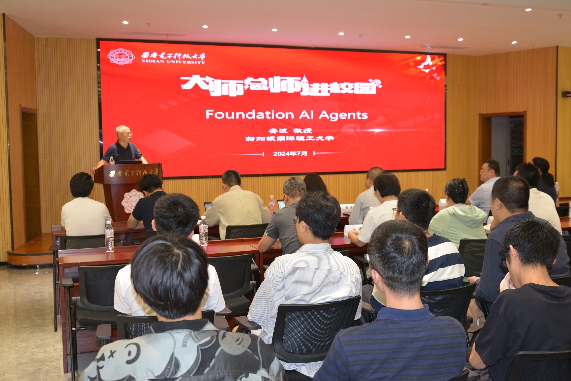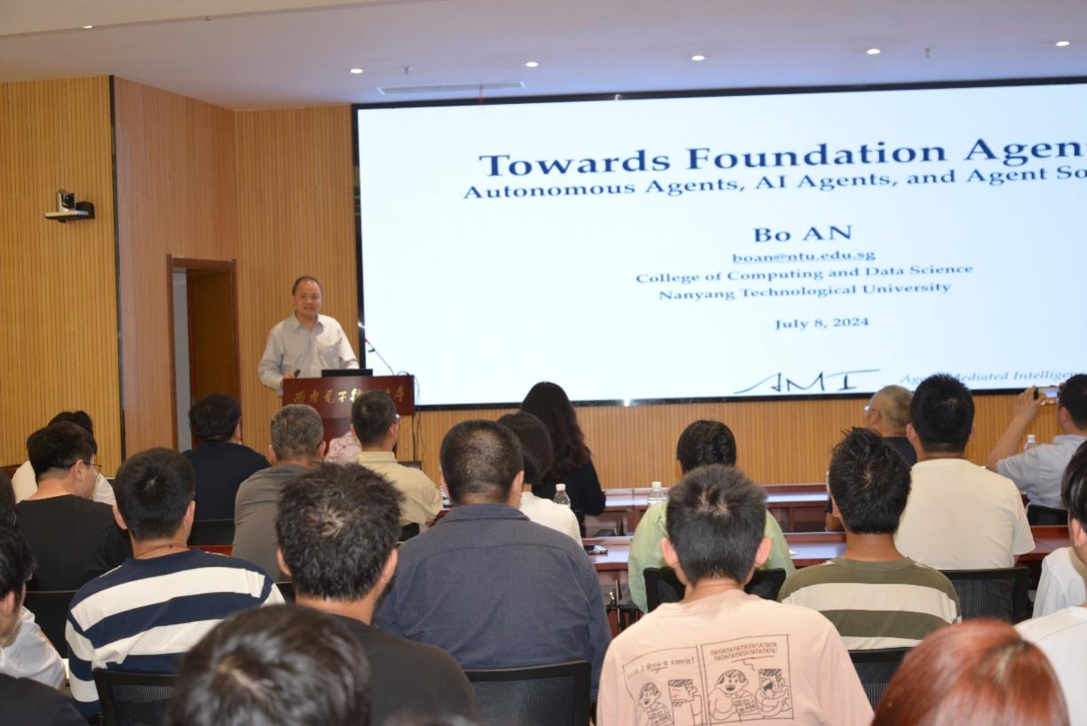 (通讯员 陈龙)7月8日,应yl7703永利集团、校人才工作办公室邀请,新加坡南洋理工大学校长讲席教授、人工智能系主任、人工智能研究院联席院长安波教授来校在南校区会议中心A103会议室为师生作题为“Foundation AI Agents”的专题报告。报告由yl7703永利集团党委书记、学校软件工程学科负责人李青山教授主持,学院二十余位青年教师和学校相关学科研究生共一百余人参加了报告会。