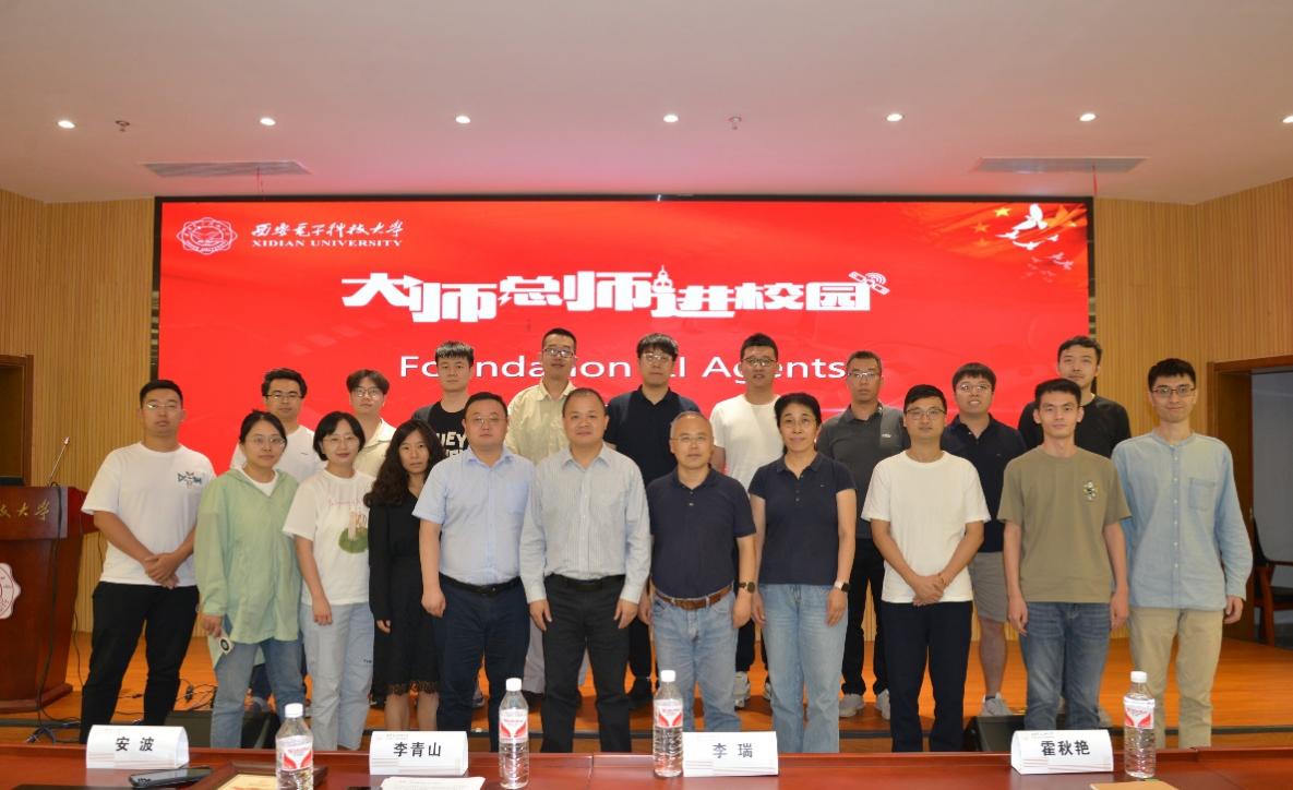 报告会现场氛围热烈,在提问交流环节,安波教授与师生亲切交流,细致回答了与会师生有关Agents以及AI大模型等方面的问题,也和学院参会教师就青年教师学术成长和职业发展等主题进行了交流互动。报告结束后,李青山代表学校向安波教授颁发了“大师总师进校园”专家报告纪念牌。
