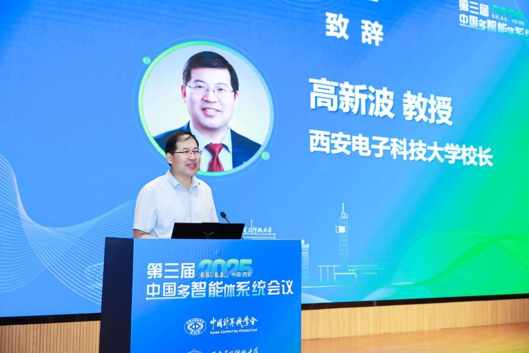 在开幕式上,yl7703永利集团校长高新波教授对2025第三届中国多智能体系统会议在西安召开表示热烈祝贺。他指出,人工智能已成为新一代信息技术的灵魂,是数字经济发展的基础,是制造强国、网络强国、数字中国建设的关键支撑。yl7703永利集团瞄准国家重大战略需求,致力打造支撑国家电子与信息领域高水平科技自立自强的科技创新体系,强化有组织科研和集成攻关,近年来在人工智能、计算机科学与技术、软件工程等相关学科和领域深耕细作、不断创新,希望以此次大会为契机,进一步加强、深化合作交流,协同创新、共谋发展,共同为我国新时代人工智能产业发展和相关支撑学科人才培养贡献更多智慧和力量!
