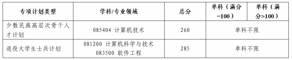 专项计划考生初试成绩满足以下条件的考生可参加复试