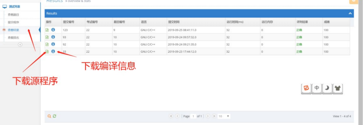 点击导航栏的“查看结果”菜单可以查看评判结果,如下图所示。